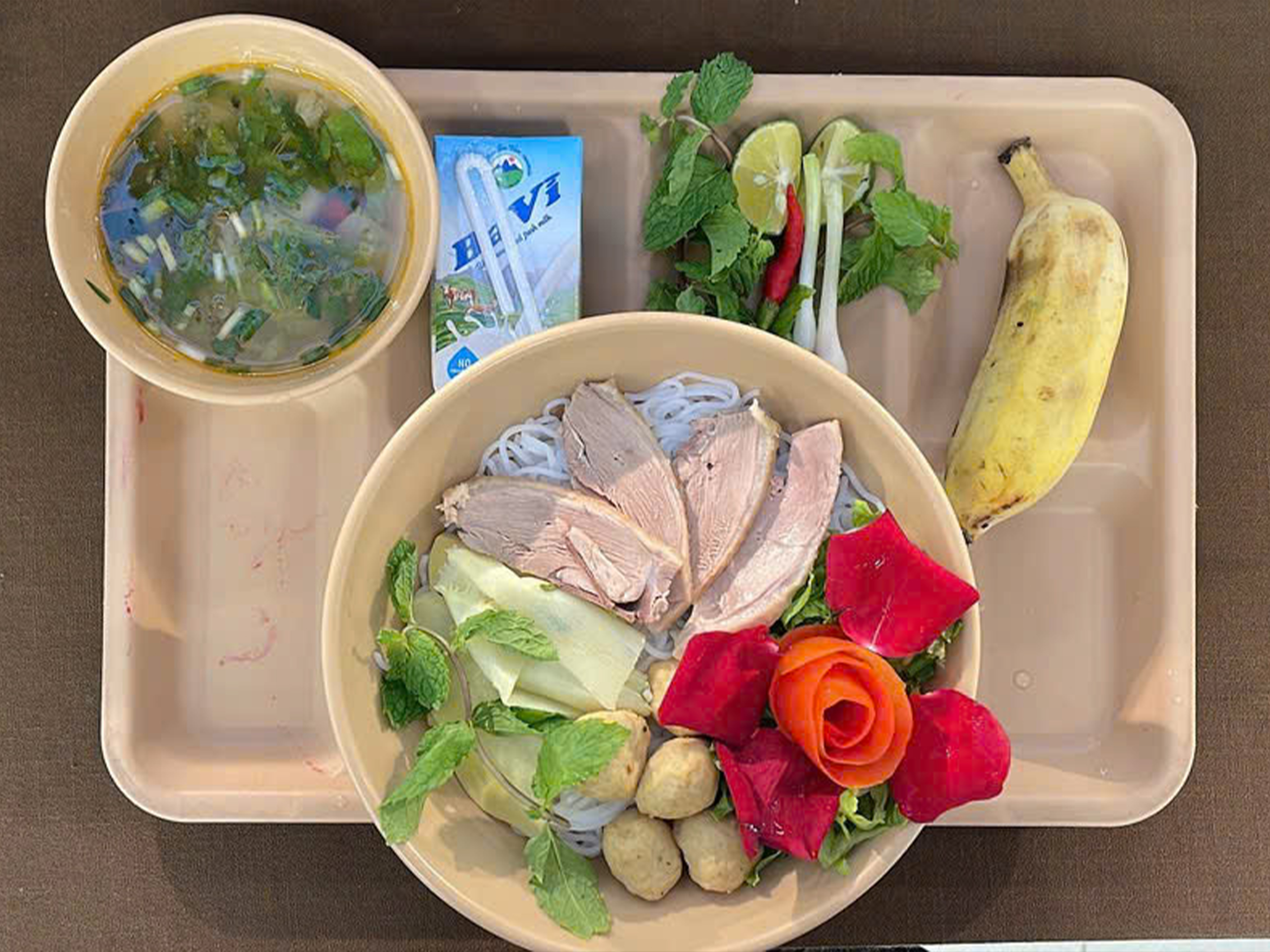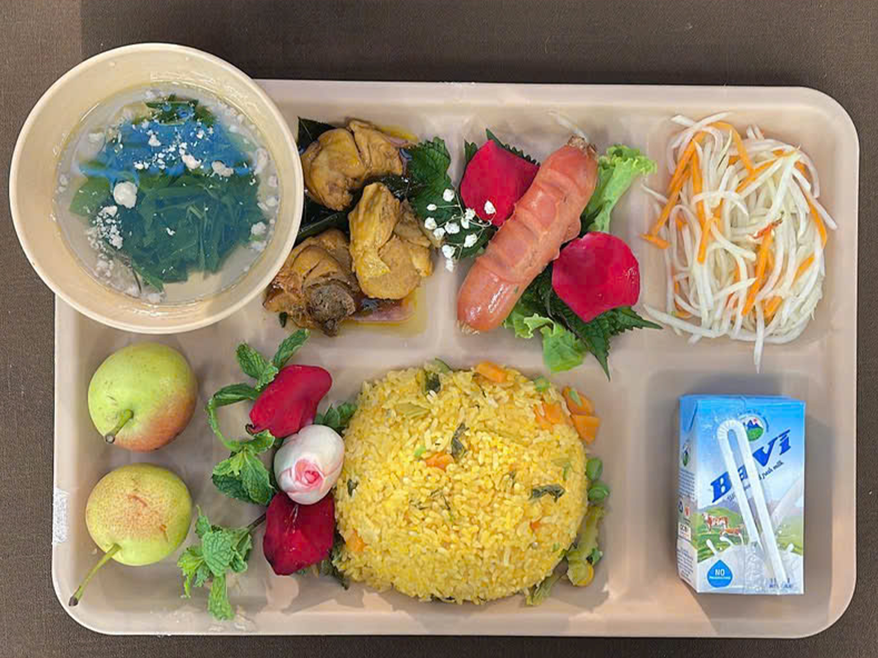 Trước giờ ăn 15 phút, suất ăn sẽ được nhân viên nhà bếp chia