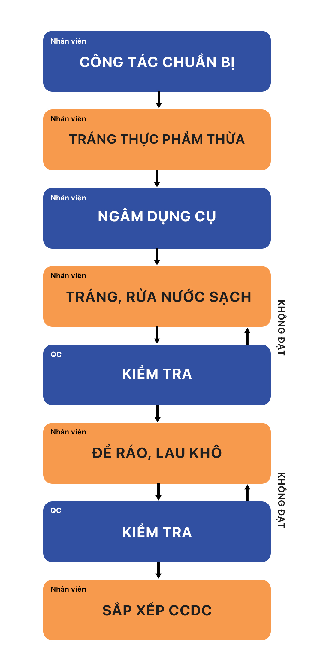 - Các dụng cụ chế biến và dụng cụ chứa phải được vệ sinh sạch
